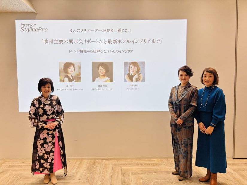 視点の異なるデザイナーによる多角的なリポートが好評のスタイリングプロ・トレンドセミナー。2026年も、長年にわたりヨーロッパの展示会や最新ホテルを視察し、独自の分析と解説に定評のある3人のクリエーターが登壇しました。 欧州主要都市で開催されたトレンドショーをはじめ、各エディターの最新情報、そして現地で体感したホテルインテリアの潮流まで。豊富な視察データをもとに、3人それぞれの視点から2026年のインテリアトレンドを読み解きました。